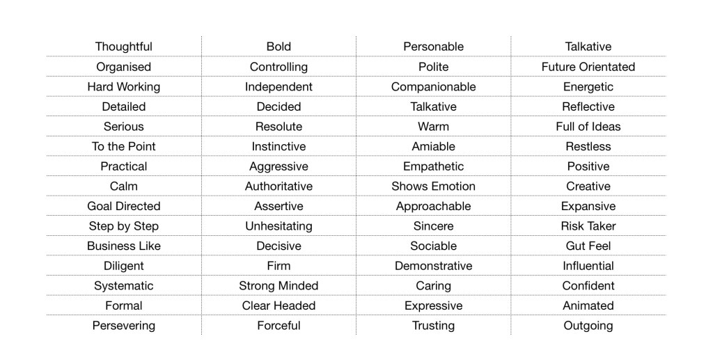 - Using the below table across each row select only two words that best describes you